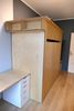 Korpen und Fronten aus Birke Multiplex Platten. Geölt mit Naturtrend Projektöl, was dem Birkefurnier einen angenehm schlichten Farbton verleiht. Die Schreibtischplatte aus Esche Vollholz mit natürlcher Baumkante wurde mit Hartwachsöl behandelt um einen guten Langzeitschutz zu erreichen. Die Oberschränke sind an die Dachschräge angepasst und bieten so eine optimale Platzausnutzung des Raums.